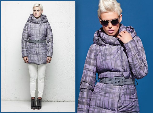 Модный пуховик по фигуре из ткани "шейп-мемори" с кружевным принтом, застёгивающейся на молнию и кнопки. Капюшон и объёмный воротник "стойка" защищают от холодного ветра. Талию подчёркивает перфарированный ремень, так же в комплект входит пояс из ткани в тон.