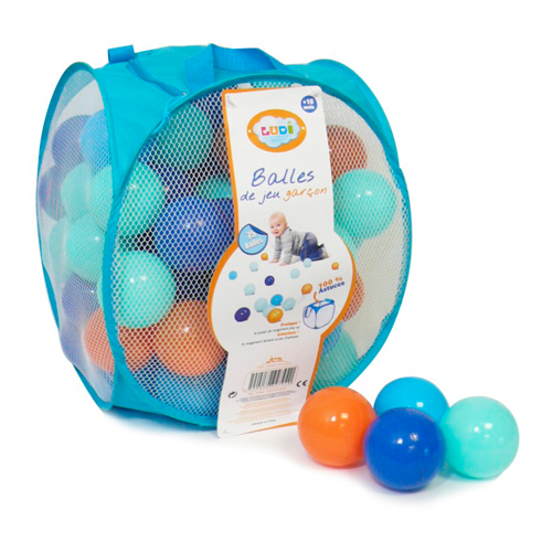 Игрушки в данном наборе больше подойдут для мальчика. Они выполены в сине-голубой цветовой гамме плюс оранжевый цвет. Шарики мягкие и изготовлены из высококачественного нетоксичного пластика. Сумка очень компактна и проблем с хранением не возникнет.