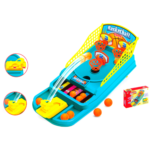 "Веселый баскетбол" - настольная игра для 1-2 игроков. Каждый игрок стреляет из катапульты 6 шариками, стараясь попасть в корзины. Корзины отличаются величиной очков, присваиваемых за попадание в них. Выигрывает тот игрок, который набрал больше очков.