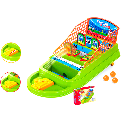 "Веселый футбол" - настольная игра для 1-2 участников. Каждый игрок стреляет из катапульты 6 шариками, стараясь попасть в щитки с мишенями. Щитки с мишенями отличаются количеством очков, присваиваемых за попадание в них. Выигрывает тот игрок, который набрал больше очков.