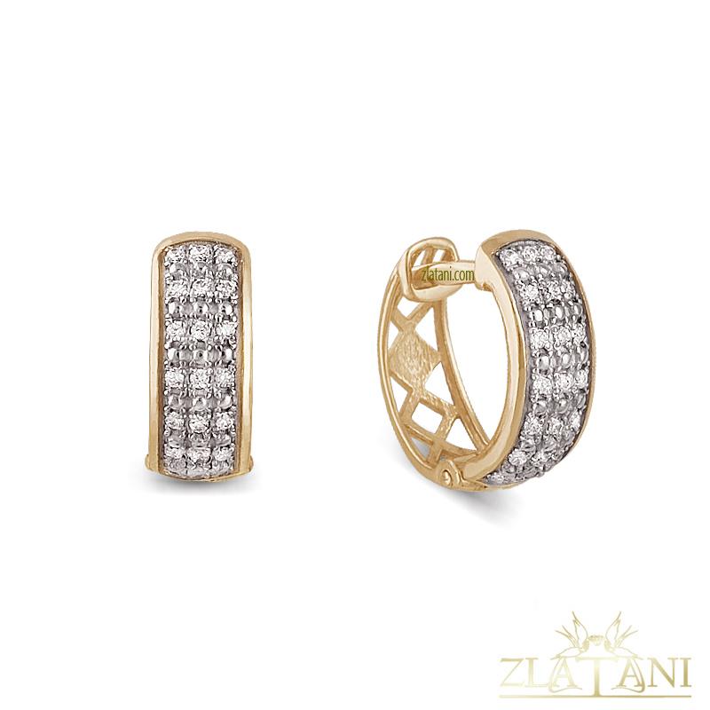 Габаритный размер: 13 мм. * 5 мм.Вставлены белые фианиты диаметром 1,0 мм. в количестве 42 штуки.Серьги частично зародированые.