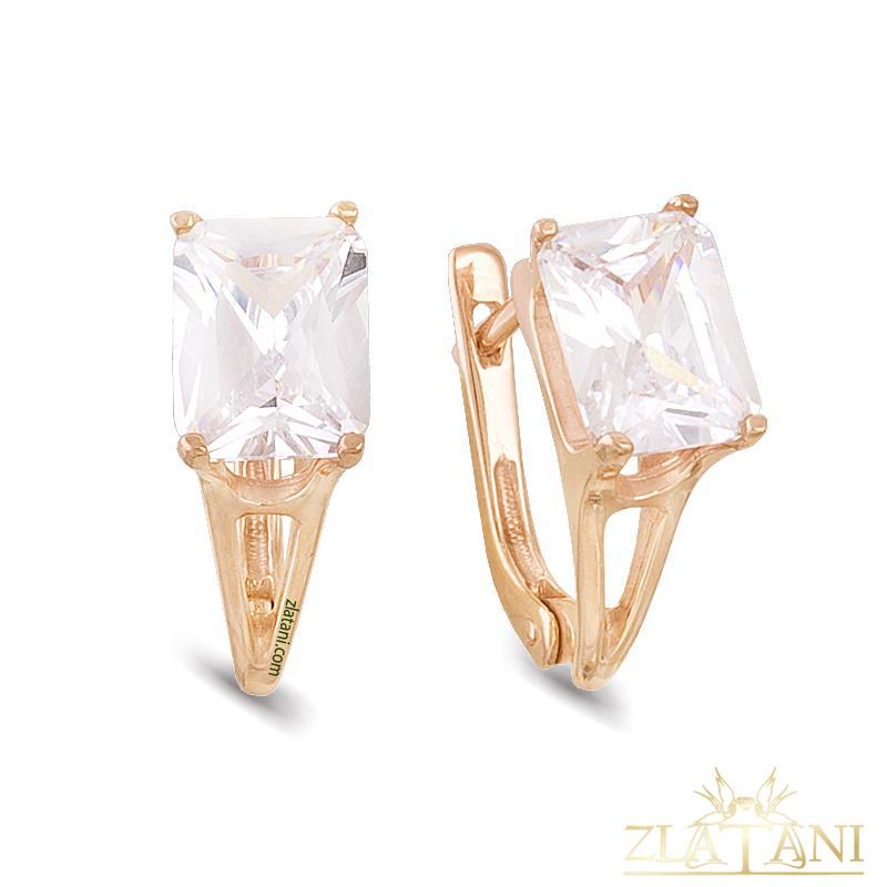 Габаритный размер: 16 мм * 6 мм. В серьги вставлены фианиты бесцветные огранки октагон размером 9 мм * 7 мм. ,в количестве 2 штуки.