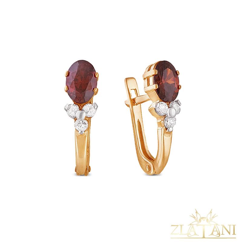 Габаритный размер: 18 мм *6 мм .В серьгах вставлены фианиты под гранат огранки овал размером 7 мм * 5 мм .,в количестве 2 штуки.Фианит белый диаметром 2,5 мм .,в количестве 6 штук.