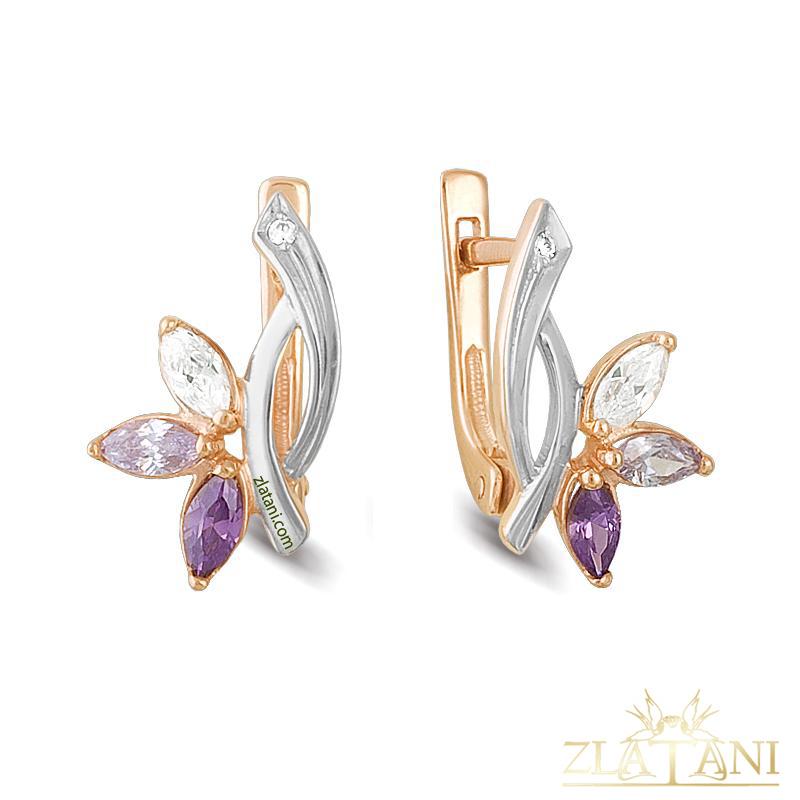 Габаритный размер: 16 мм * 10 мм .В серьги вставлены фианиты бесцветные огранки маркиз размером 5 мм * 2,50 мм .,в количестве 2 штуки,фианиты лаванда огранки маркиз размером 5 мм * 2,50 мм .,в количестве 2 штуки,фианиты под аметист огранки маркиз размером 5 мм *2,50 мм .,в количестве 2 штуки.Фианит бесцветный диаметром 1,0 мм в количестве 2 штуки.Серьги частично родированные.