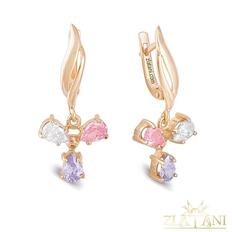 Габаритный размер: 32 мм * 15 мм .В серьгах присутствуют фианит бесцветный огранки груша размером 7 мм * 5 мм .,в количестве 2 штуки.Фианит лаванда огранки груша размером 7 мм * 5 мм .Фианит розовый огранки груша размером 7 мм * 5 мм.,в количестве 2 штуки