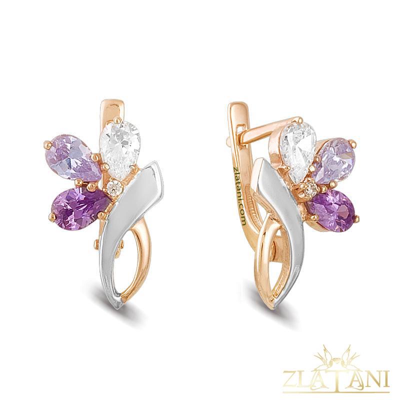 Габаритный размер: 14 мм * 9 мм .В серьгах вставлены фианит бесцветный огранки груша размером 6 мм * 4 мм .,в количестве 2 штуки .Фианит лаванда огранки груша размером 6 мм * 4 мм .,в количестве 2 штуки. Фианит под аметист огранки груша размером 6 мм * 4 мм .,в количестве 2 штуки .Фианит бесцветный диаметром 1,25 мм .,в количестве 2 штуки.Серьги частично родированные.