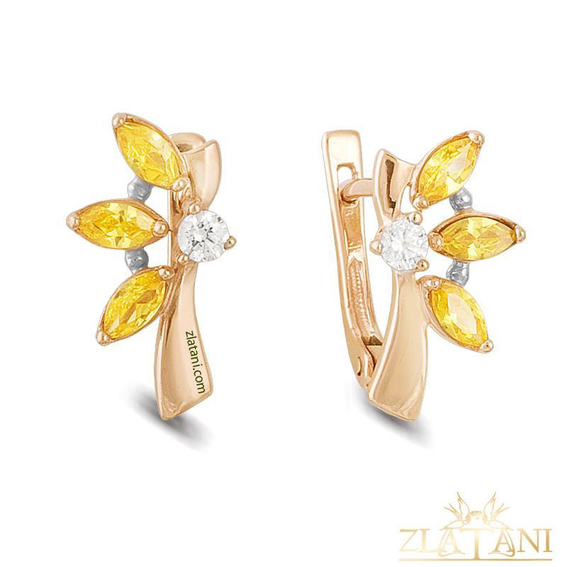 Габаритный размер: 18 мм * 10 мм .В серьгах присутствуют , фианит золотой огранки маркиз размером 5 мм * 2,50 мм .,в количестве 6 штук , фианит белый диаметром 2,25 мм .,в количестве 2 штуки.