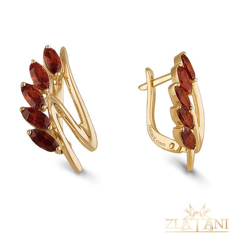 Габаритный размер: 22 мм * 10 мм .В серьги вставлены фианит под гранат огранки овал размером 5 мм * 3 мм .,в количестве 10 штук