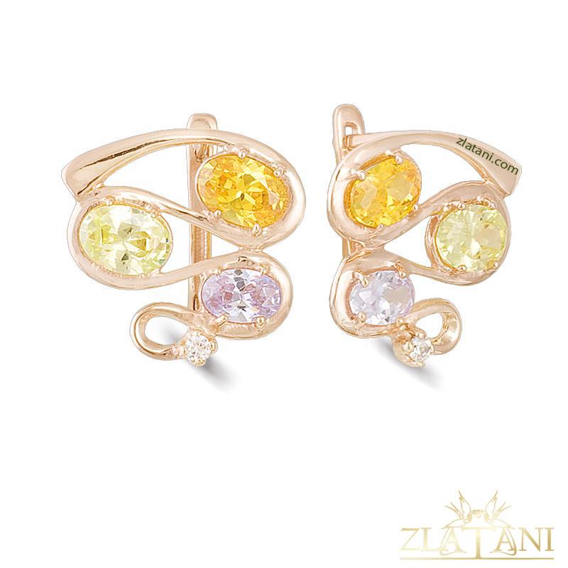 Габаритный размер: 18 мм * 18 мм .В серьги вставлены фианиты под цитрин огранки овал размером 7 мм * 5 мм .,в количестве 2 штуки,фианит под хризолит огранки овал размером 7 мм * 5 мм .,в количестве 2 штуки,фианит лаванда огранки овал размером 5 мм * 3 мм .,в количестве 2 штуки,фианит бесцветный диаметром 1,50 мм .,в количестве 2 штуки.