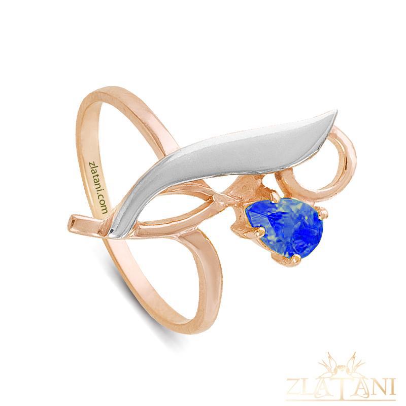 Габаритный размер: 22 мм * 9 мм .,в кольцо вставлен фианит под сапфир огранки груша размером 6 мм * 4 мм .,в количестве 1 штука.Кольцо частично зародированно