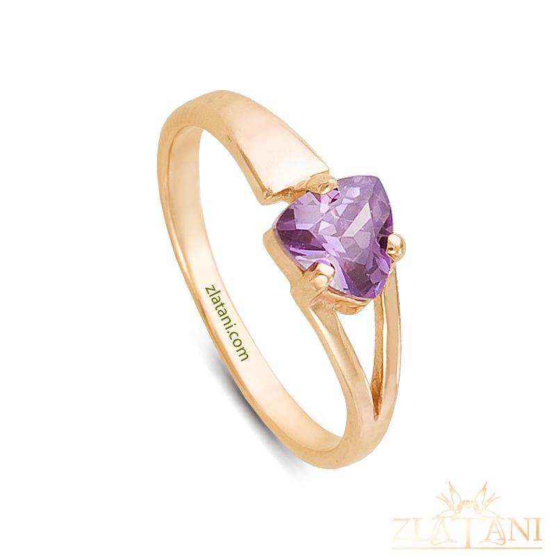 Габаритный размер: в кольцо вставлен фианит под аметист огранки триллион размером 6 мм * 6 мм .,в количестве 1 штука.