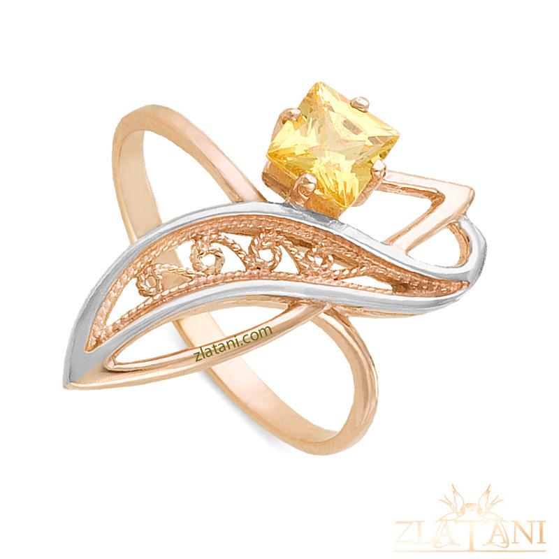 Габаритный размер: в кольцо вставлен фианит золотой огранки квадрат размером 5 мм * 5 мм .,в количестве 1 штука.Кольцо частично зародированно