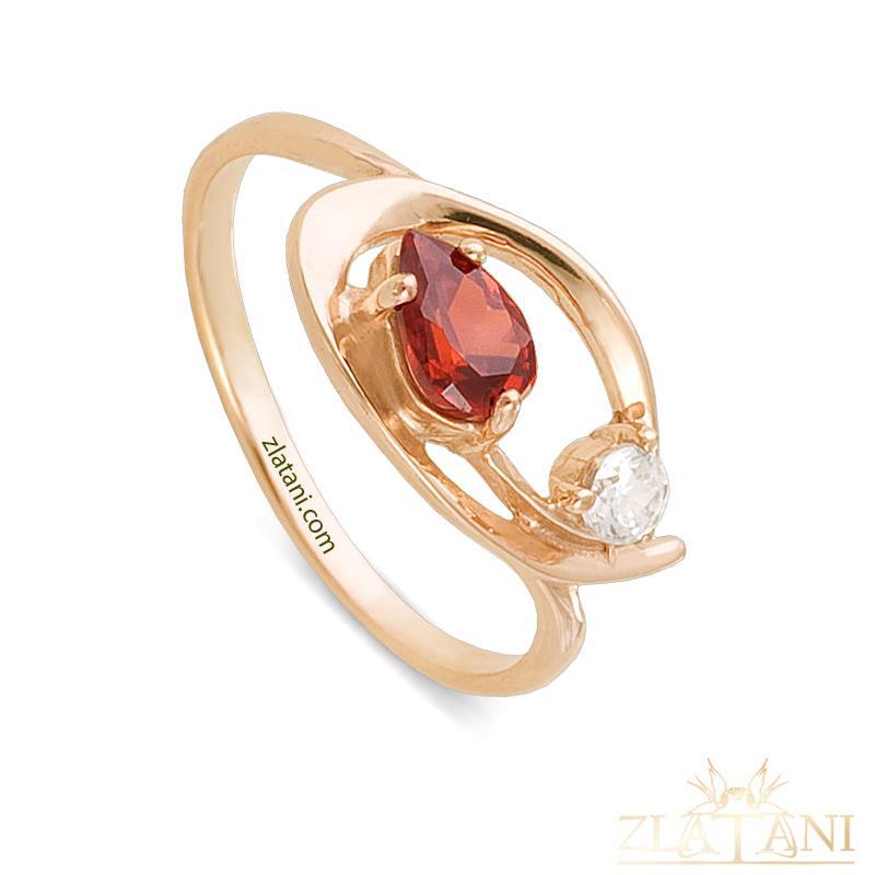 Габаритный размер: в кольце представлен фианит под гранат огранки груша размером 6 мм * 4 мм .,в количестве 1 штука.фианит бесцветный диаметром 2,0 мм .,в количестве 1 штука.