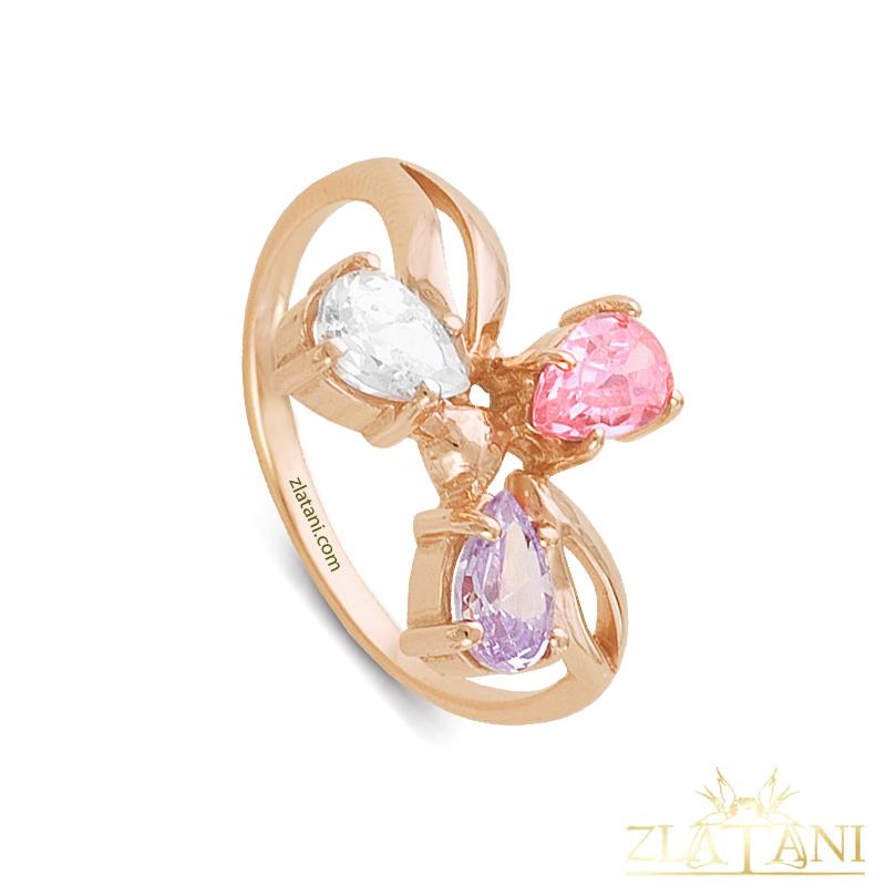 Габаритный размер: в кольце представлены фианит лаванда,фианит бесцветный,фианит розовый огранки груша размером 7 мм* 5 мм .,в количестве 3 штуки.