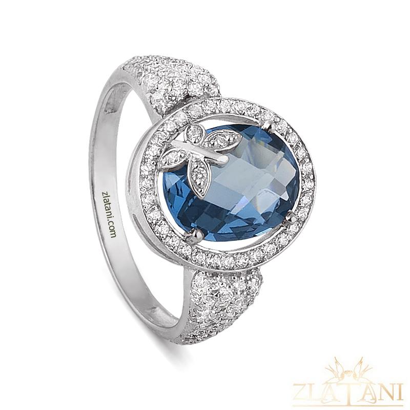Габаритный размер: в украшение вставлены фианит под лондон топаз огранки бриолет овал размером 10 мм * 8 мм .,в количестве 1 штука,фианит бесцветный диаметром 1,0 мм .,в количестве 120 штук.Кольцо родированное