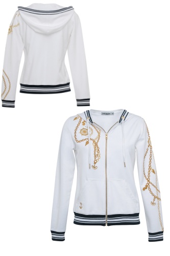 толстовка с капюшоном. Лаконичность кроя позволяет акцентировать внимание на выразительной вышивке золотого цвета, дополненной стразами SWAROVSKI. Фурнитура золотого цвета прекрасно сочетается с цветом вышивки и придает нарядность изделию.Цвета-белый,темно-синий,красный,42-56,цена-1690р.