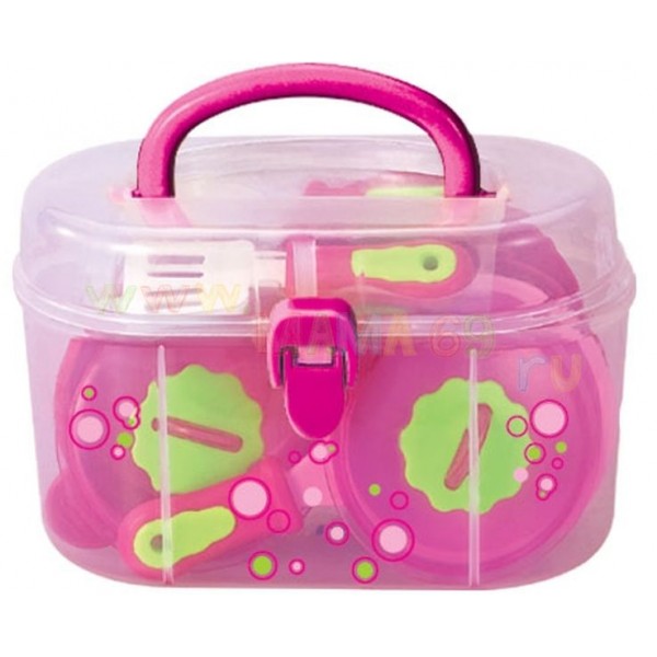 Яркий набор игрушечной посудки включает в себя все необходимое для построения сюжетно-ролевой игры.Здесь есть удобные вместительные крупные предметы: кастрюлька и сковорода с крышками, две мелкие тарелки, лопатка для жарки и другие аксессуары. Игрушки выполнены из прочного пластика ярко-розового и салатового цветов. Играть с таким набором очень приятно и удобно, ведь он достаточно универсален он отлично дополнит коллекцию игрушечной посуды ребенка. Характеристики Возраст: от 3 лет Комплект: кастрюля,сковородка,тарелки,аксессуары Материал: пластик Размер: 19х9,5х12 см