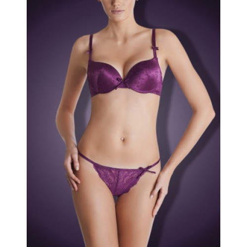 - Бюстгальтер из атласной жаккардовой ткани и кружева украшенный атласным бантиком спереди.
