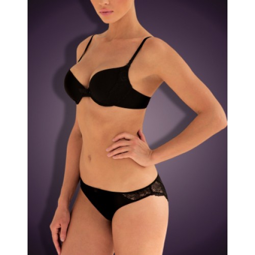 Трусики из эластичной ткани и кружева, декорированные атласным бантиком спереди.