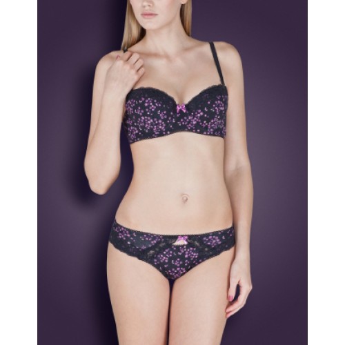 - Трусики-стринг из эластичной хлопковой ткани с цветочным принтом, декорированные узким кружевом.