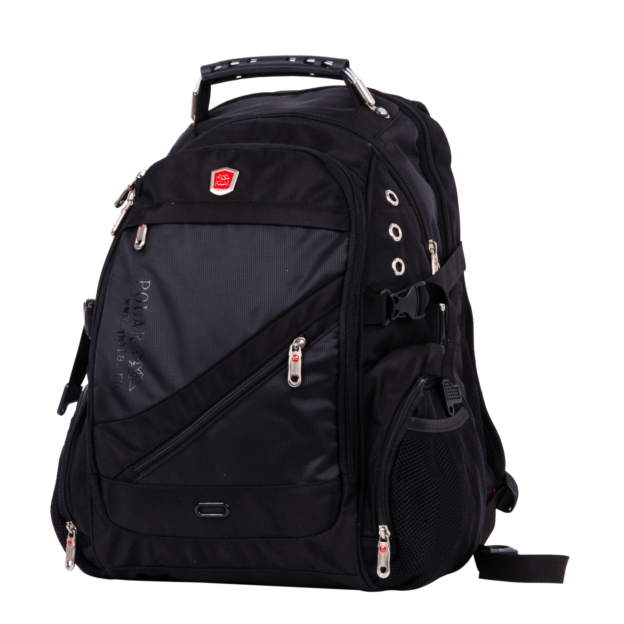 Рюкзак для ноутбука до 15" фирмы Polar. Система циркуляции воздуха AirFlow для комфорта и максимального удобства для спины. Плечевые ремни жесткие анатомической формы. Отделение под ноутбук закрывается на молнию, внутри расположен универсальный переходник - удлинитель для наушников 3,5 мм выход на левой лямке рюкзака. Второе большое отделение располагает поместить все необходимые вещи и предметы. Объем рюкзака можно регулировать при помощи боковых стяжек. Спереди большой накладной карман на молнии, внутри которого органайзер и карабин для ключей. Два кармана на молнии на передней части рюкзака. По бокам два кармана на молнии, и два кармана из мягкого сетчатого материала на резинке. Эргономичная и крепкая ручка с металлическим тросом внутри для переноски, а также есть петля подвешивания.