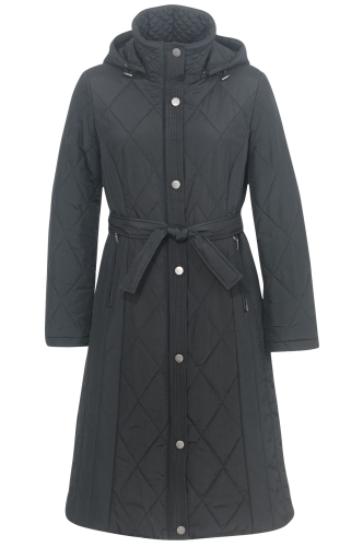 Изделие с отстегивающимся капюшоном. Карманы с застежкой на молнию расположены в рельефах. Ромбовидная стежка с различным ритмом рисунка привлекает внимание и является прекрасным дополнением к дизайну изделия. Модель с поясом.