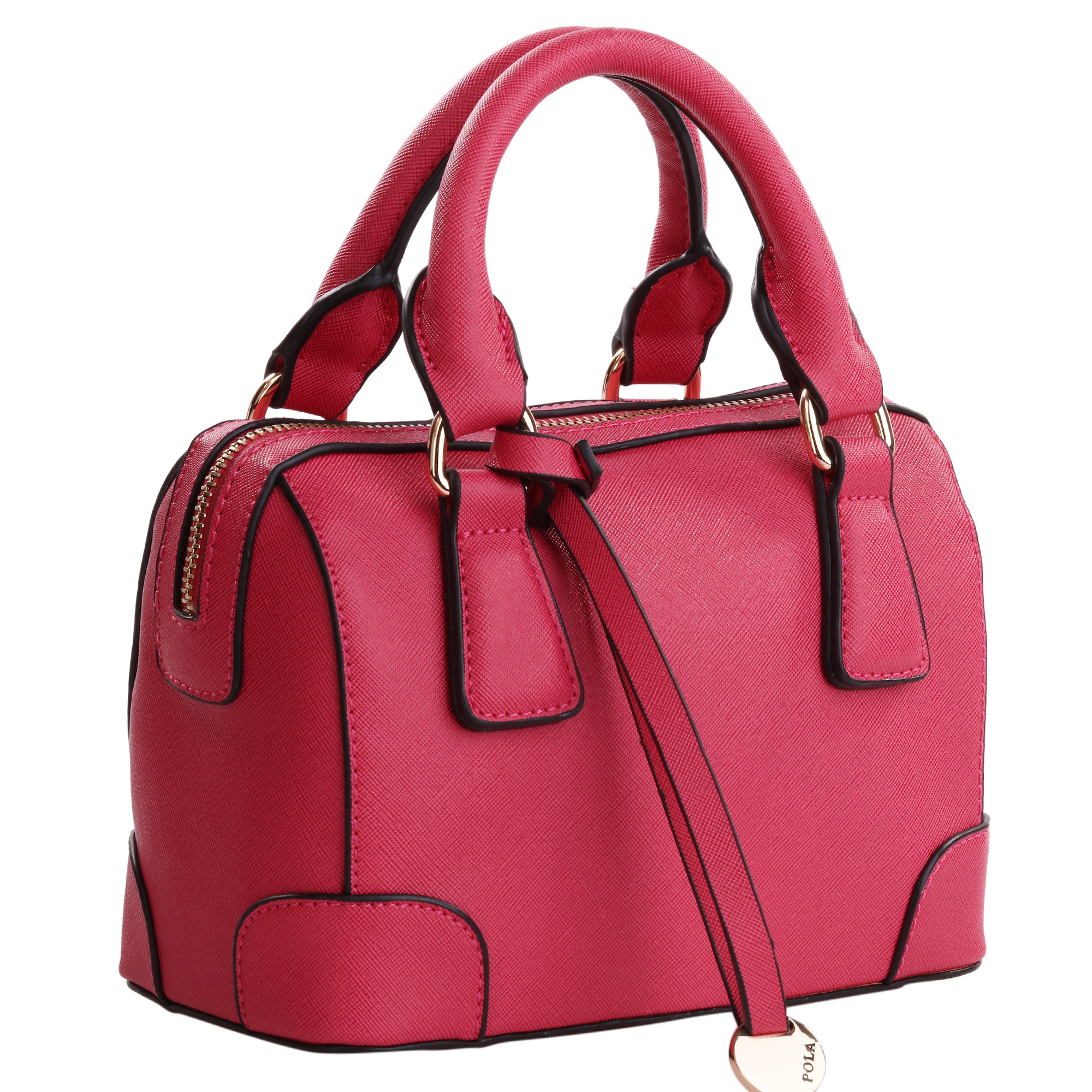 Маленькая женская сумочка Pola выполнена из экокожи. Закрывается на металлическую молнию, внутри один открытый карман и карман на молнии. В комплекте съемный плечевой ремень, регулируемый по длине, максимальная высота 59 см. Высота ручки- 9 см. Цвет фурнитуры- золото. На дне металлические ножки.