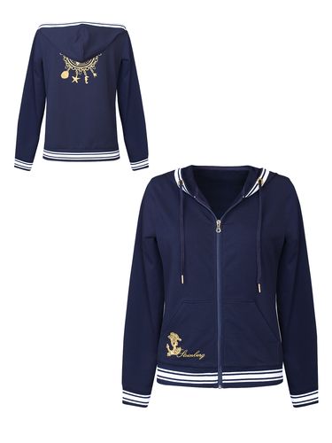 Толстовка с капюшоном. Лаконичность кроя позволяет акцентировать внимание на выразительной вышивке золотого цвета, дополненной стразами SWAROVSKI. Фурнитура прекрасно сочетается с цветом вышивки и придаёт нарядность изделию.