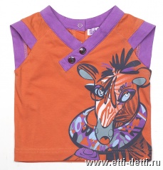V-образная горловина. Принт - водная и пластизолевая печать. Застежка - кнопки на спинке.