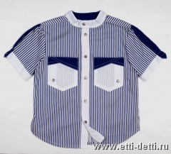 Набивная сорочечная ткань. Низ рукава оформлен манжетой.