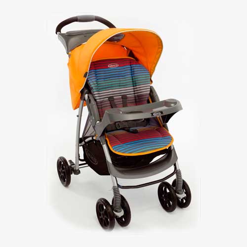 Особенности: облегченная рама из стали; спинка может раскладываться в 3 положениях до горизонтального; 5-точечные ремни безопасности; два пластмассовых столика: один устанавливается вместо бампера для малыша, второй - на ручке для мамы; превосходная амортизация на всех колесах; передние колеса двойные плавающие с возможностью фиксации; стояночный тормоз расположен на задней оси; большая корзина для вещей; эргономичная ручка вынесена чуть дальше назад; коляской управлять легко и приятно; коляска складывается одной рукой с помощью поворотной рукоятки. Комплектация: чехол на ноги Характеристики: Диаметр колес: 17 см Количество колес: 4 Тип колес: плотная резина Механизм складывания: книжка Регулировка наклона спинки: есть Вес: 7 кг Лицом к маме/к дороге: нет Размеры (Д/Ш/В): 93x49x103 см, ширина сиденья - 35 см, длина спального места - 70 см Возможность установки на шасси: автокресло Graco Спинка в положении лежа: есть Перекладина перед ребенком: есть Поворотные передние колеса: есть Регулировка подножки: нет Регулировка высоты ручки: нет Ширина колесной базы: 49 см