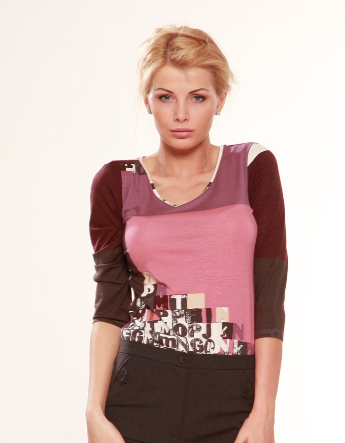 Оригинальная блуза из трикотажного полотна с рисунком, прилегающего силуэта, без воротника, с горловиной круглой формы, без застежки. Эластичная, приятная к телу ткань и идеальный крой, создадут особый комфорт при носке данной модели.