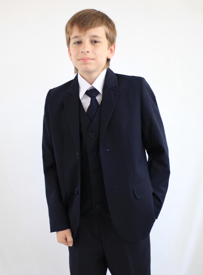 Пиджак классический. Воротник английский. Застежка центральная на три пуговицы. Карманы прорезные с клапаном.
